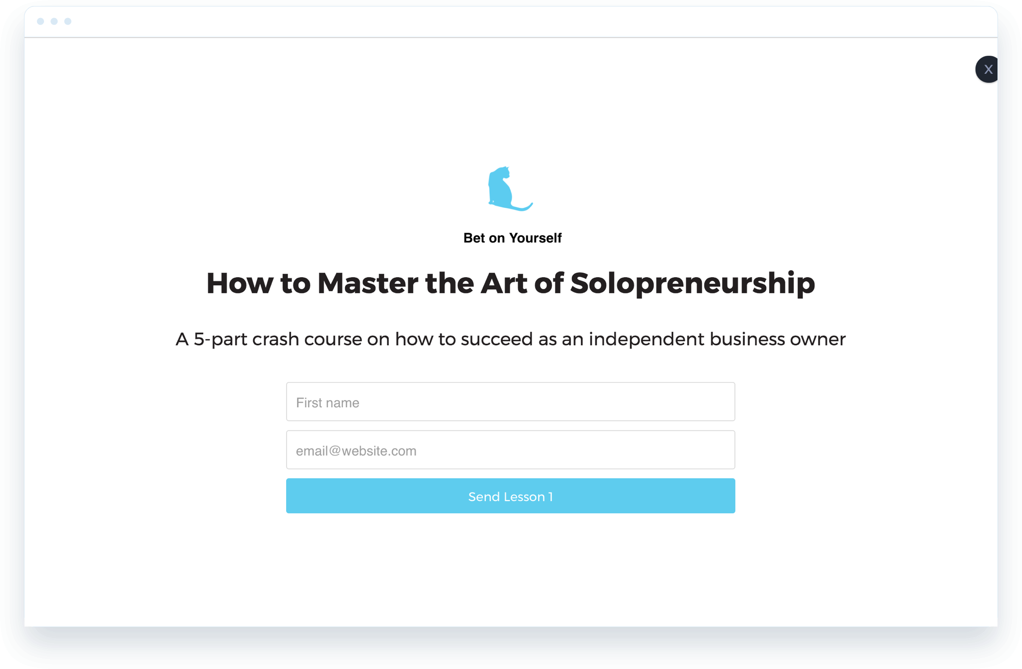 It’s easy to see that Bet on Yourself really knows their audience. Their CTA crafted in ConvertFlow delivers a clear and concise message in a 1-line headline and subheadline (which, for anyone who has tried, knows that it is harder to achieve than it looks!). Also, it’s important to note that their button copy communicates immediate value to the visitor without looking hypey, and without creating a bad user experience.